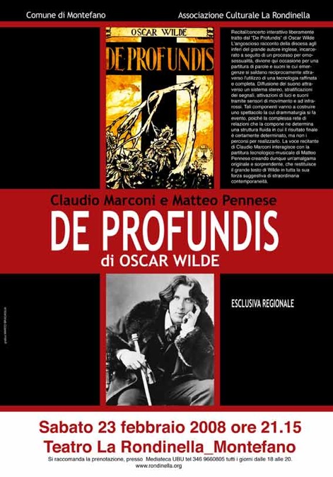 De Profundis è il titolo, attribuito all’atto della pubblicazione, di una lunga lettera privata che Oscar Wilde, detenuto per omosessualità nel carcere di Reading, scrive nei primi mesi del 1897a colui che egli ritiene il principale responsabile della tragedia che lo ha colpito: il suo giovane amante Bosie (al secolo Lord Alfred Douglas).